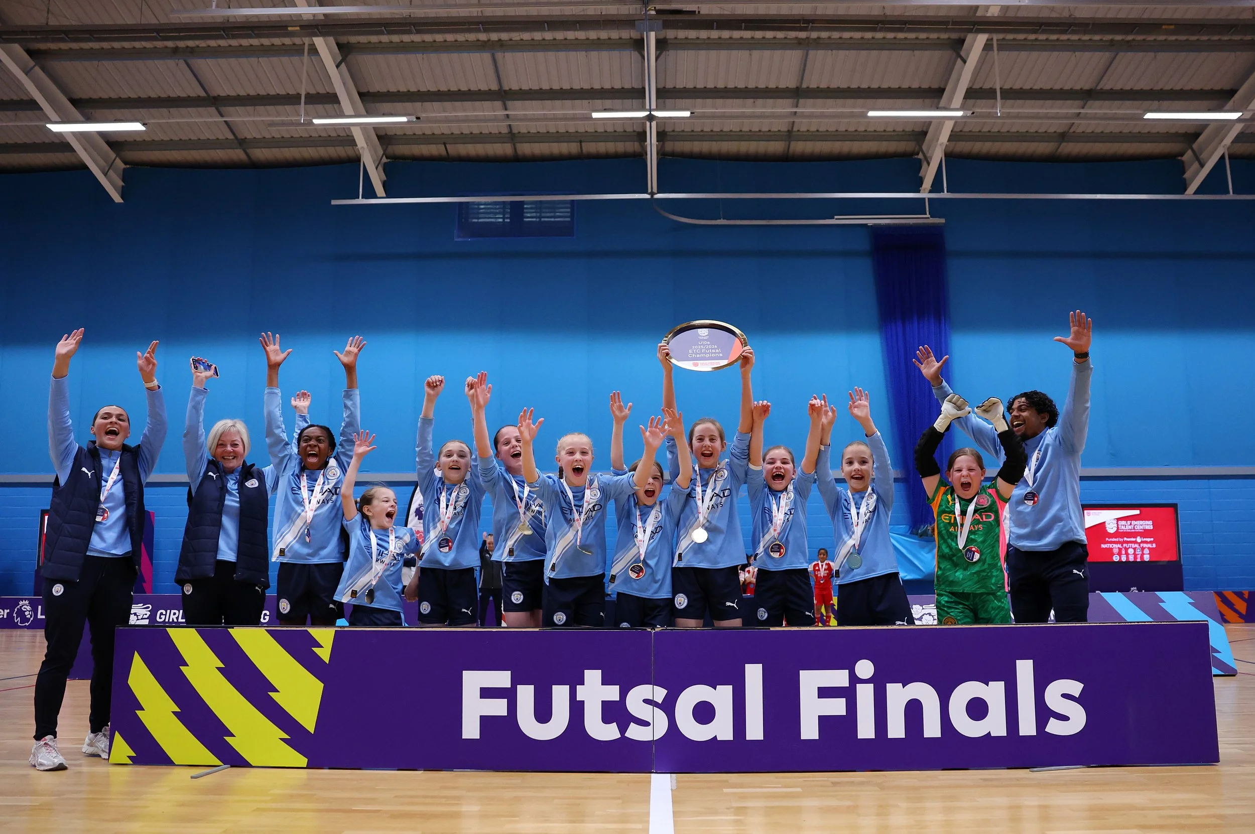 Manchester City celebrate being crowned U10 National Futsal Champions in Derby.